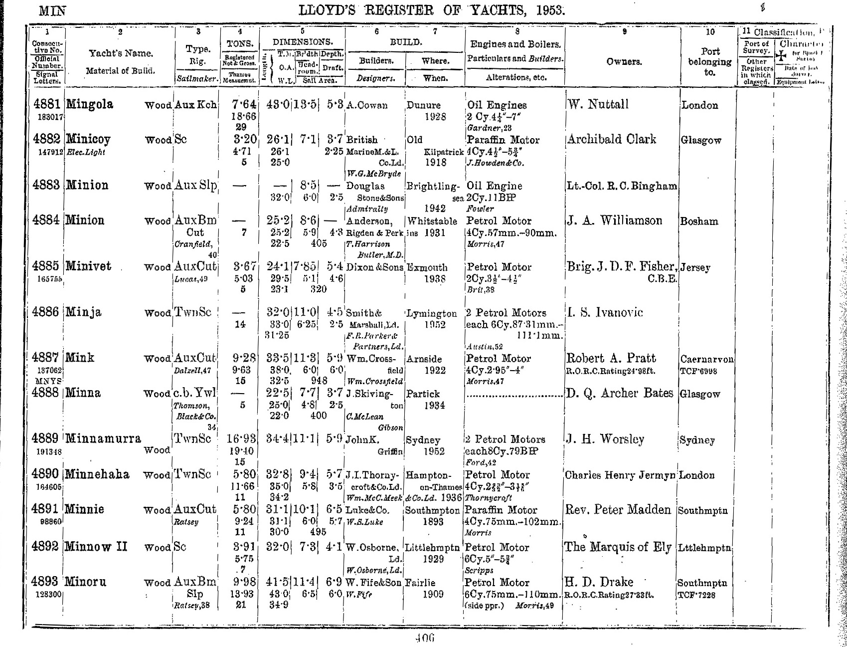 ![]() Minion 32ft cutter, courtesy of Peter M. Fisher, Brightlingsea 1942 |